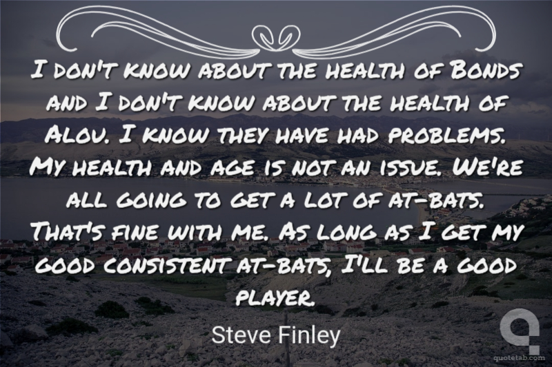 I don't know about the health of Bonds and I don't know about the health of Alou. I know they have had problems. My health and age is not an issue. We're all going to get a lot of at-bats. That's fine with me. As long as I get my good consistent at-bats, I'll be a good player.