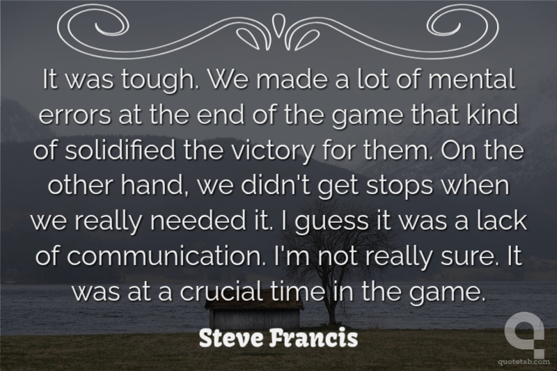 It was tough. We made a lot of mental errors at the end of the game that kind of solidified the victory for them. On the other hand, we didn't get stops when we really needed it. I guess it was a lack of communication. I'm not really sure. It was at a crucial time in the game.
