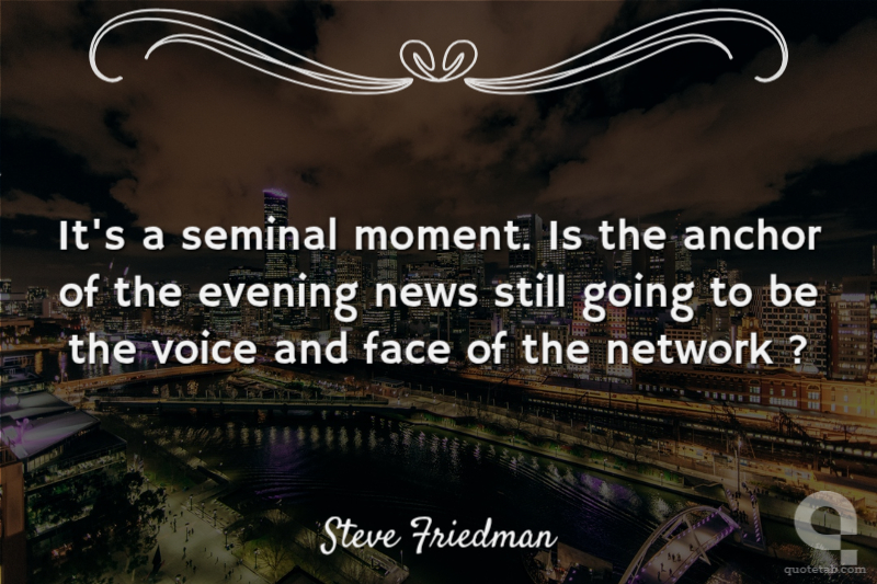 It's a seminal moment. Is the anchor of the evening news still going to be the voice and face of the network ?