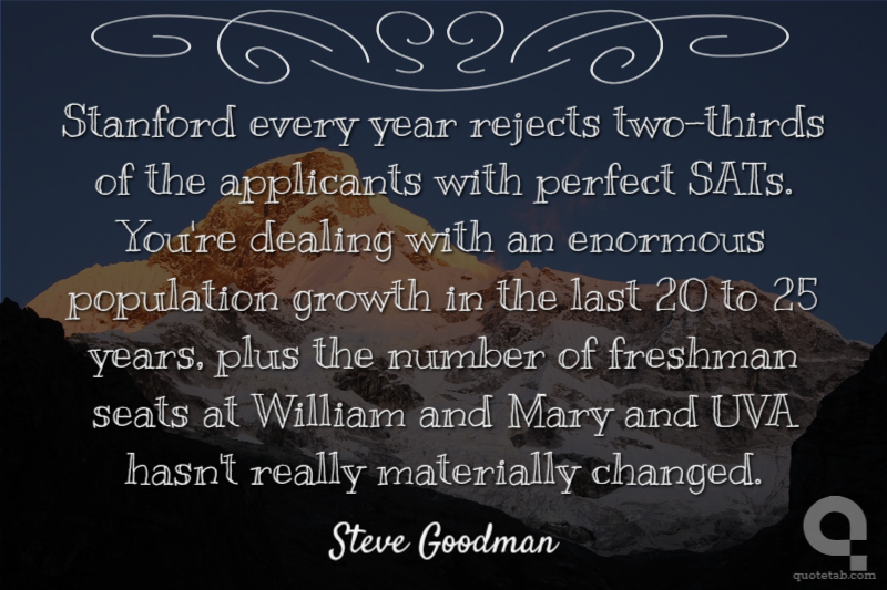 Stanford every year rejects two-thirds of the applicants with perfect SATs. You're dealing with an enormous population growth in the last 20 to 25 years, plus the number of freshman seats at William and Mary and UVA hasn't really materially changed.