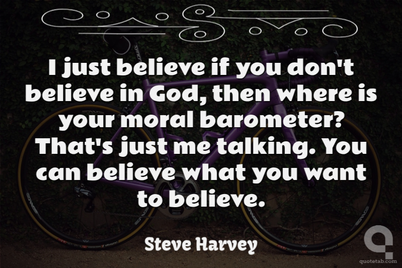 I just believe if you don't believe in God, then where is your moral barometer? That's just me talking. You can believe what you want to believe.