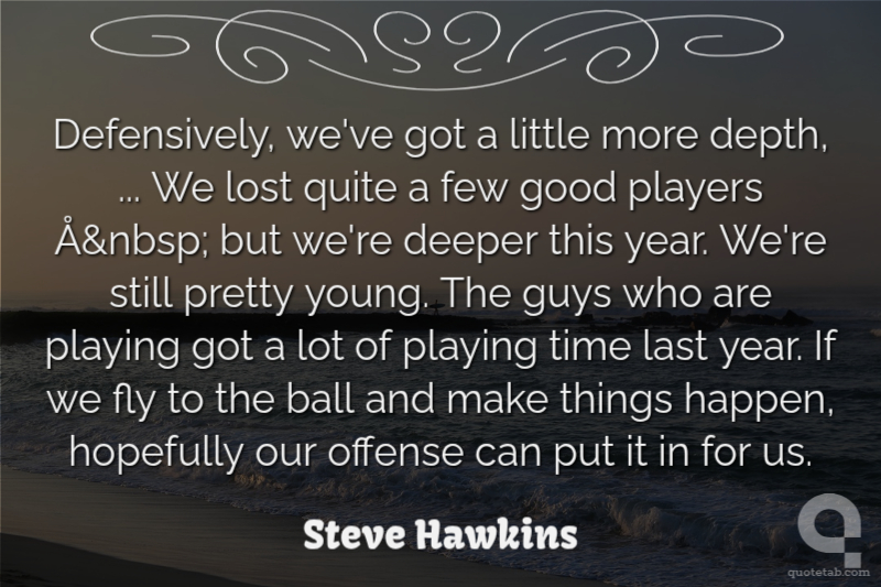Defensively, we've got a little more depth, ... We lost quite a few good players Å but we're deeper this year. We're still pretty young. The guys who are playing got a lot of playing time last year. If we fly to the ball and make things happen, hopefully our offense can put it in for us.