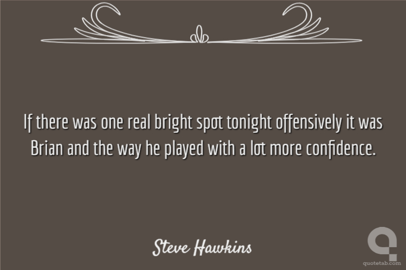 If there was one real bright spot tonight offensively it was Brian and the way he played with a lot more confidence.