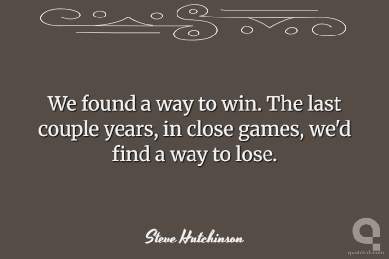 We found a way to win. The last couple years, in close games, we'd find a way to lose.