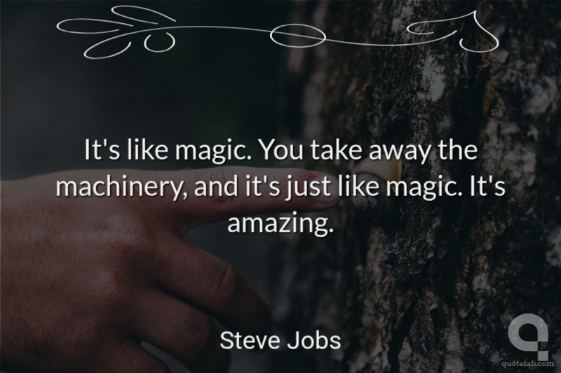 It's like magic. You take away the machinery, and it's just like magic. It's amazing.