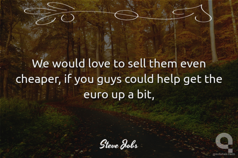 We would love to sell them even cheaper, if you guys could help get the euro up a bit,