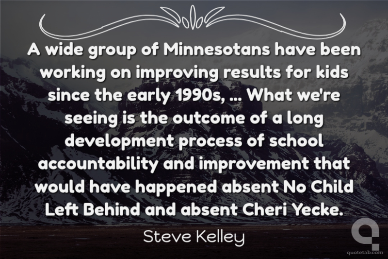 A wide group of Minnesotans have been working on improving results for kids since the early 1990s, ... What we're seeing is the outcome of a long development process of school accountability and improvement that would have happened absent No Child Left Behind and absent Cheri Yecke.