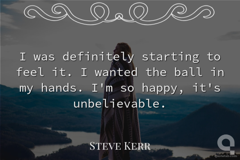 I was definitely starting to feel it. I wanted the ball in my hands. I'm so happy, it's unbelievable.