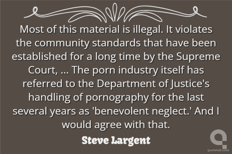 Most of this material is illegal. It violates the community standards that have been established for a long time by the Supreme Court, ... The porn industry itself has referred to the Department of Justice's handling of pornography for the last several years as 'benevolent neglect.' And I would agree with that.