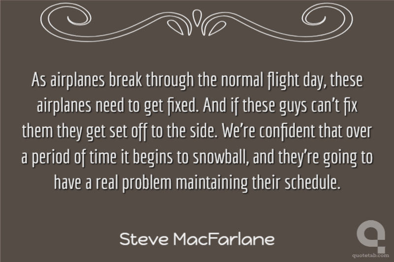 As airplanes break through the normal flight day, these airplanes need to get fixed. And if these guys can't fix them they get set off to the side. We're confident that over a period of time it begins to snowball, and they're going to have a real problem maintaining their schedule.