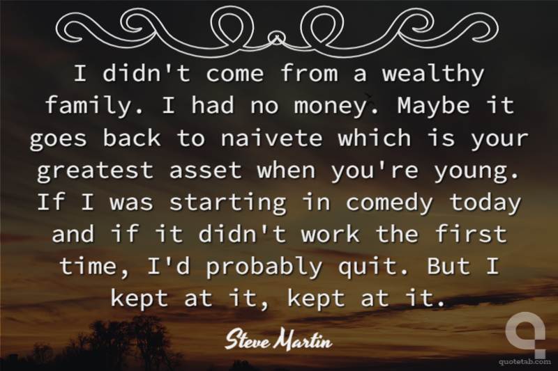 I didn't come from a wealthy family. I had no money. Maybe it goes back to naivete which is your greatest asset when you're young. If I was starting in comedy today and if it didn't work the first time, I'd probably quit. But I kept at it, kept at it.