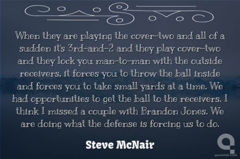 When they are playing the cover-two and all of a sudden it's 3rd-and-2 and they play cover-two and they lock you man-to-man with the outside receivers, it forces you to throw the ball inside and forces you to take small yards at a time. We had opportunities to get the ball to the receivers. I think I missed a couple with Brandon Jones. We are doing what the defense is forcing us to do.