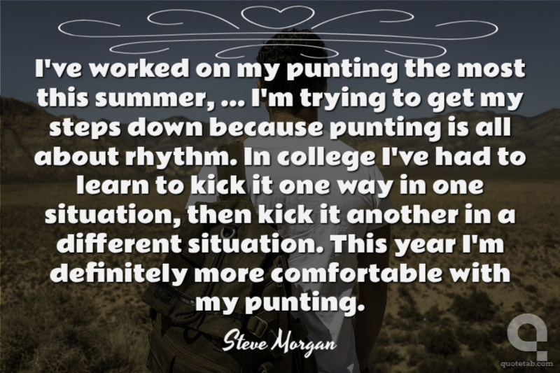 I've worked on my punting the most this summer, ... I'm trying to get my steps down because punting is all about rhythm. In college I've had to learn to kick it one way in one situation, then kick it another in a different situation. This year I'm definitely more comfortable with my punting.
