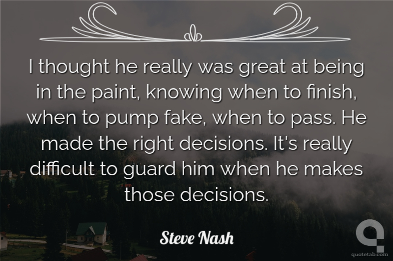I thought he really was great at being in the paint, knowing when to finish, when to pump fake, when to pass. He made the right decisions. It's really difficult to guard him when he makes those decisions.