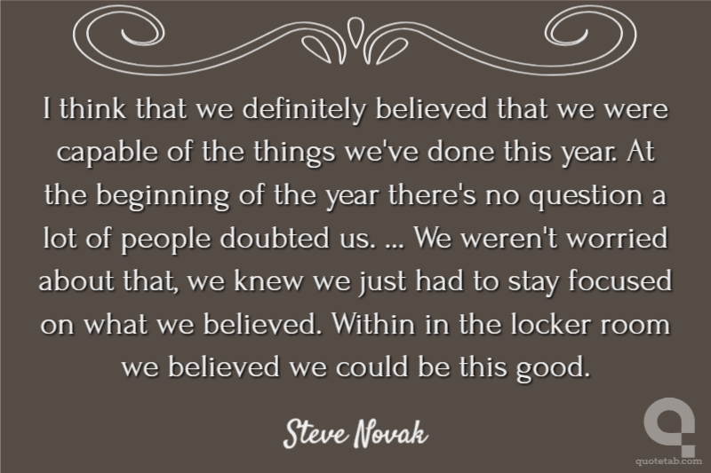 I think that we definitely believed that we were capable of the things we've done this year. At the beginning of the year there's no question a lot of people doubted us. ... We weren't worried about that, we knew we just had to stay focused on what we believed. Within in the locker room we believed we could be this good.