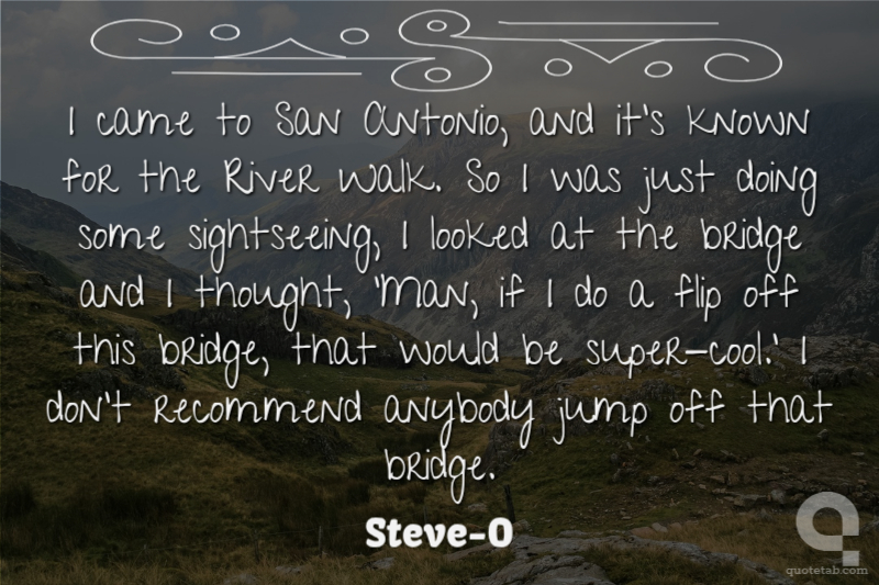 I came to San Antonio, and it's known for the River Walk. So I was just doing some sightseeing, I looked at the bridge and I thought, 'Man, if I do a flip off this bridge, that would be super-cool.' I don't recommend anybody jump off that bridge.
