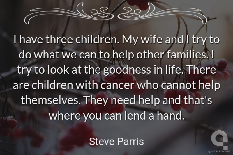 I have three children. My wife and I try to do what we can to help other families. I try to look at the goodness in life. There are children with cancer who cannot help themselves. They need help and that's where you can lend a hand.