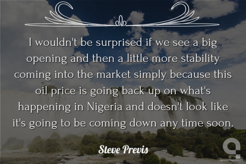 I wouldn't be surprised if we see a big opening and then a little more stability coming into the market simply because this oil price is going back up on what's happening in Nigeria and doesn't look like it's going to be coming down any time soon.