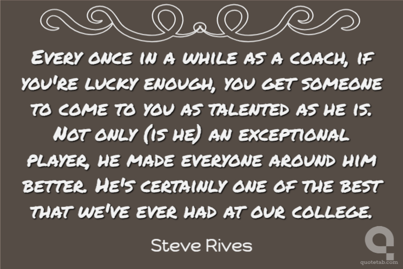 Every once in a while as a coach, if you're lucky enough, you get someone to come to you as talented as he is. Not only (is he) an exceptional player, he made everyone around him better. He's certainly one of the best that we've ever had at our college.
