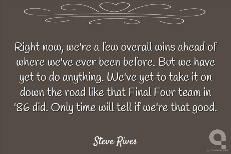 Right now, we're a few overall wins ahead of where we've ever been before. But we have yet to do anything. We've yet to take it on down the road like that Final Four team in '86 did. Only time will tell if we're that good.