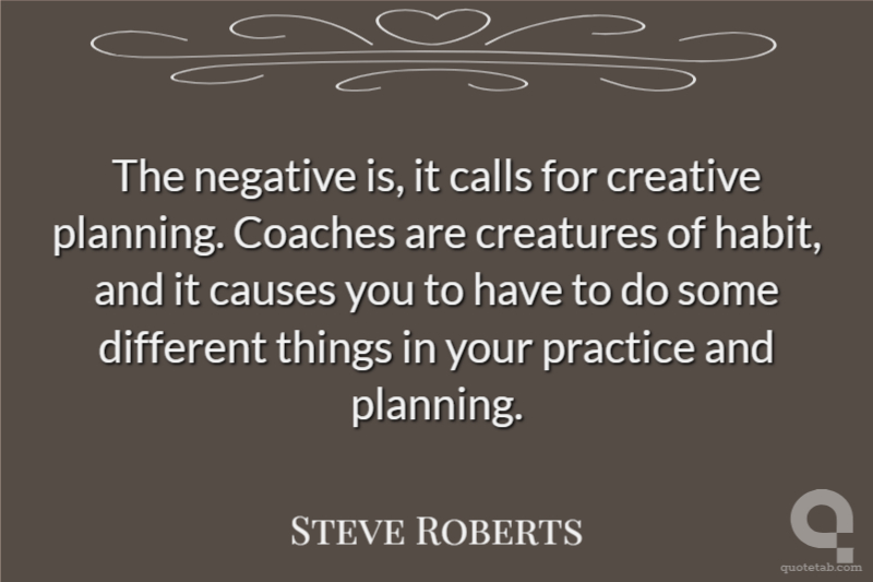 The negative is, it calls for creative planning. Coaches are creatures of habit, and it causes you to have to do some different things in your practice and planning.