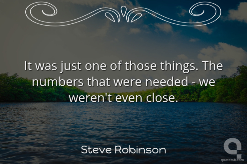 It was just one of those things. The numbers that were needed - we weren't even close.