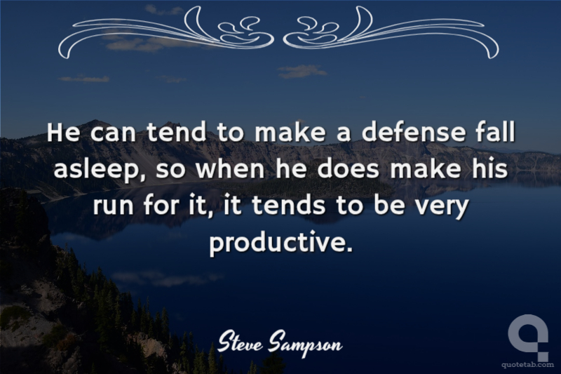 He can tend to make a defense fall asleep, so when he does make his run for it, it tends to be very productive.