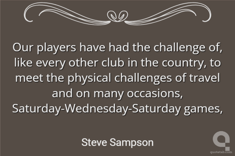 Our players have had the challenge of, like every other club in the country, to meet the physical challenges of travel and on many occasions, Saturday-Wednesday-Saturday games,