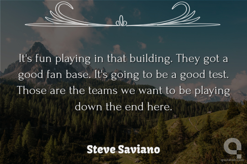 It's fun playing in that building. They got a good fan base. It's going to be a good test. Those are the teams we want to be playing down the end here.