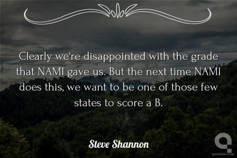 Clearly we're disappointed with the grade that NAMI gave us. But the next time NAMI does this, we want to be one of those few states to score a B.