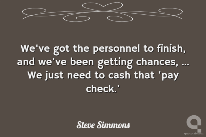 We've got the personnel to finish, and we've been getting chances, ... We just need to cash that 'pay check.'