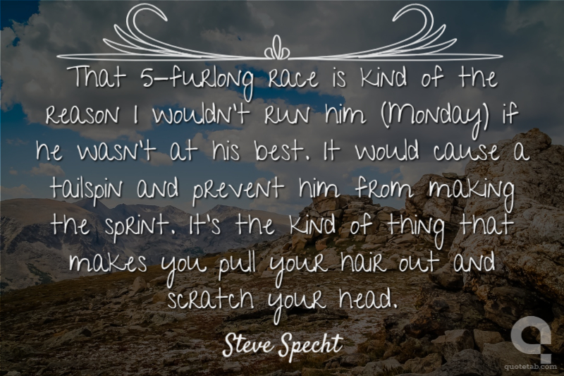 That 5-furlong race is kind of the reason I wouldn't run him (Monday) if he wasn't at his best. It would cause a tailspin and prevent him from making the sprint. It's the kind of thing that makes you pull your hair out and scratch your head.