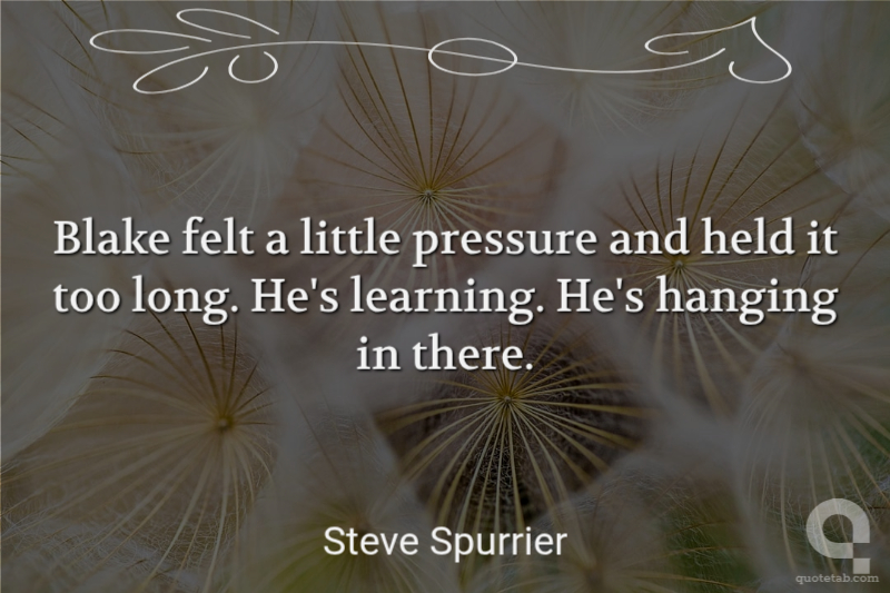 Blake felt a little pressure and held it too long. He's learning. He's hanging in there.