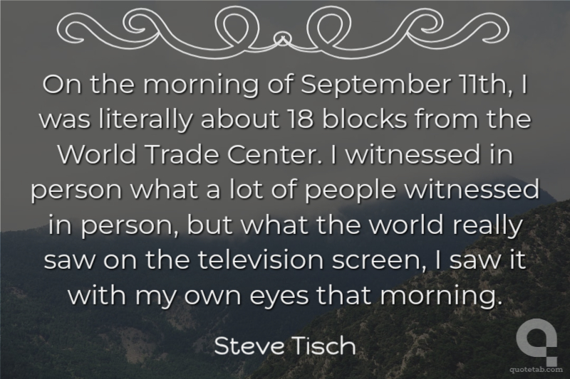 On the morning of September 11th, I was literally about 18 blocks from the World Trade Center. I witnessed in person what a lot of people witnessed in person, but what the world really saw on the television screen, I saw it with my own eyes that morning.