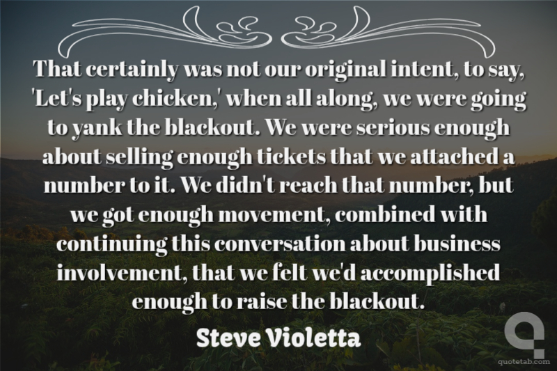 That certainly was not our original intent, to say, 'Let's play chicken,' when all along, we were going to yank the blackout. We were serious enough about selling enough tickets that we attached a number to it. We didn't reach that number, but we got enough movement, combined with continuing this conversation about business involvement, that we felt we'd accomplished enough to raise the blackout.
