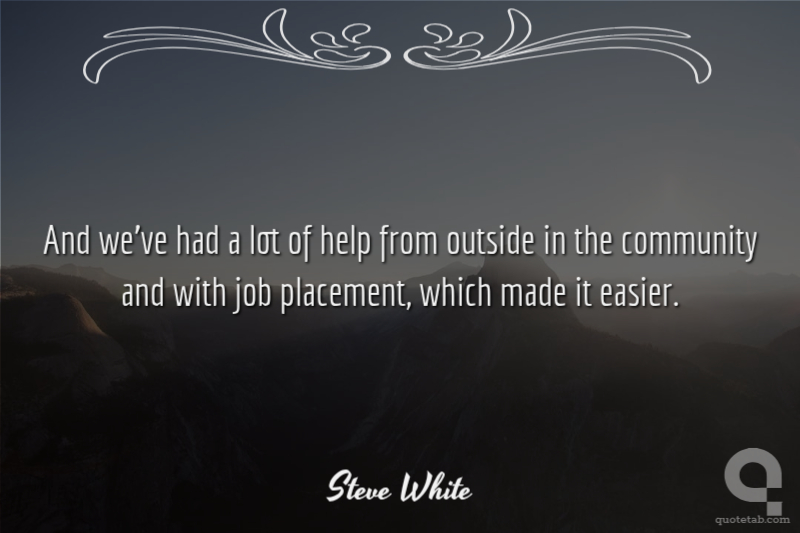 And we've had a lot of help from outside in the community and with job placement, which made it easier.