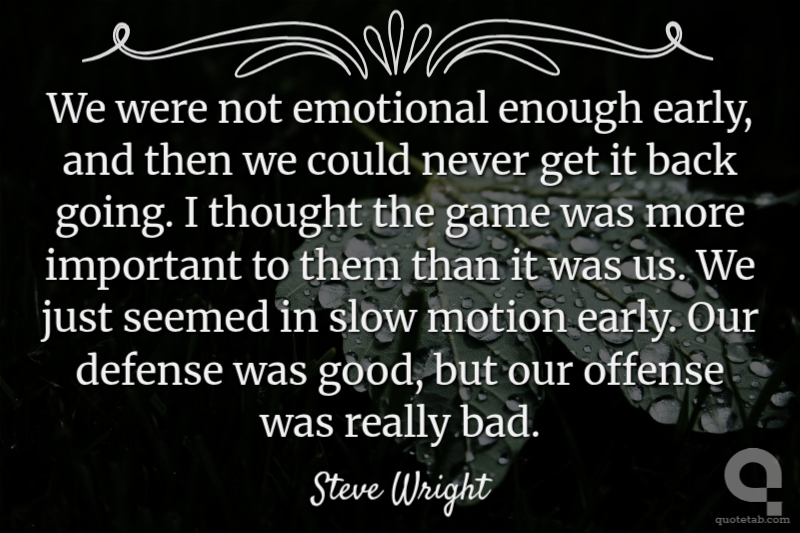 We were not emotional enough early, and then we could never get it back going. I thought the game was more important to them than it was us. We just seemed in slow motion early. Our defense was good, but our offense was really bad.