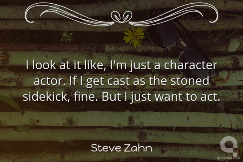 I look at it like, I'm just a character actor. If I get cast as the stoned sidekick, fine. But I just want to act.