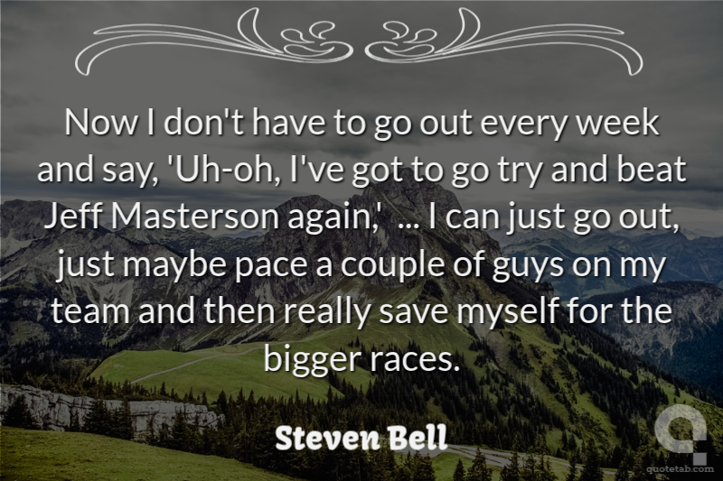 Now I don't have to go out every week and say, 'Uh-oh, I've got to go try and beat Jeff Masterson again,' ... I can just go out, just maybe pace a couple of guys on my team and then really save myself for the bigger races.