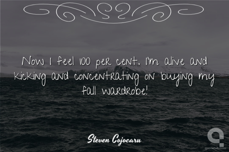 Now I feel 100 per cent. I'm alive and kicking and concentrating on buying my fall wardrobe!