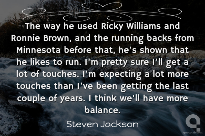 The way he used Ricky Williams and Ronnie Brown, and the running backs from Minnesota before that, he's shown that he likes to run. I'm pretty sure I'll get a lot of touches. I'm expecting a lot more touches than I've been getting the last couple of years. I think we'll have more balance.