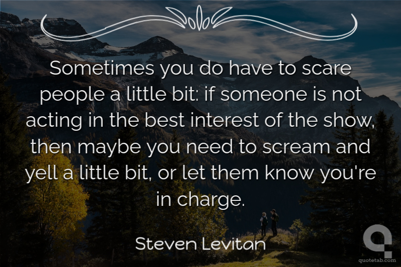 Sometimes you do have to scare people a little bit: if someone is not acting in the best interest of the show, then maybe you need to scream and yell a little bit, or let them know you're in charge.
