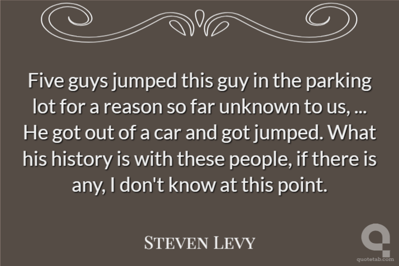 Five guys jumped this guy in the parking lot for a reason so far unknown to us, ... He got out of a car and got jumped. What his history is with these people, if there is any, I don't know at this point.