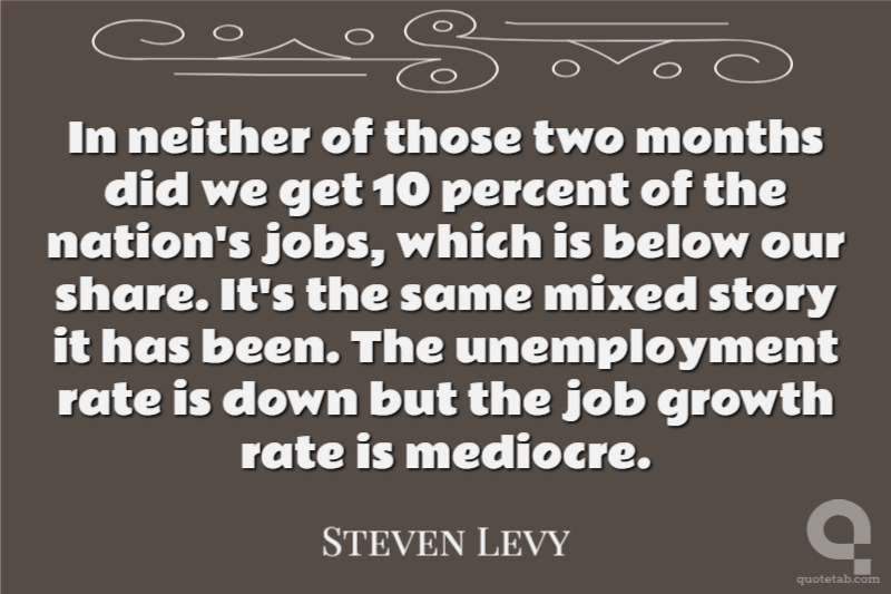 In neither of those two months did we get 10 percent of the nation's jobs, which is below our share. It's the same mixed story it has been. The unemployment rate is down but the job growth rate is mediocre.
