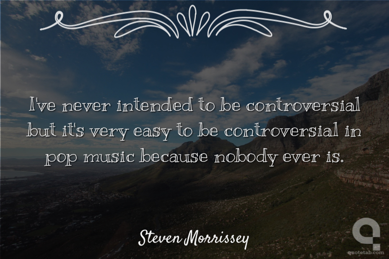 I've never intended to be controversial but it's very easy to be controversial in pop music because nobody ever is.