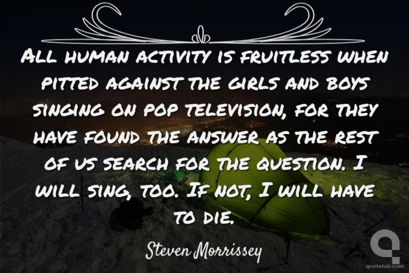 All human activity is fruitless when pitted against the girls and boys singing on pop television, for they have found the answer as the rest of us search for the question. I will sing, too. If not, I will have to die.