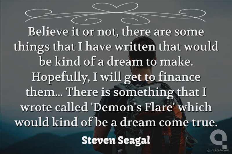 Believe it or not, there are some things that I have written that would be kind of a dream to make. Hopefully, I will get to finance them... There is something that I wrote called 'Demon's Flare' which would kind of be a dream come true.