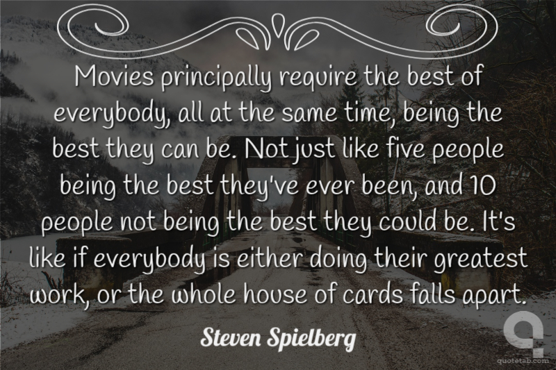 Movies principally require the best of everybody, all at the same time, being the best they can be. Not just like five people being the best they've ever been, and 10 people not being the best they could be. It's like if everybody is either doing their greatest work, or the whole house of cards falls apart.