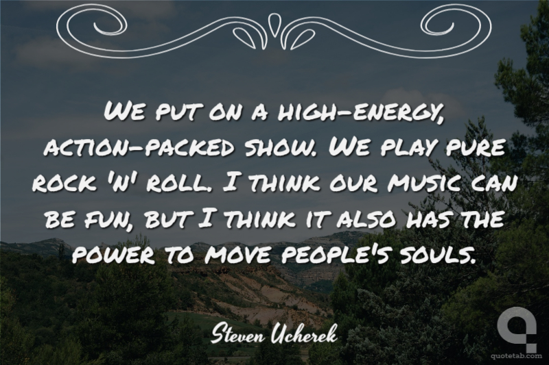 We put on a high-energy, action-packed show. We play pure rock 'n' roll. I think our music can be fun, but I think it also has the power to move people's souls.