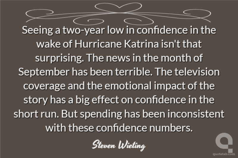 Seeing a two-year low in confidence in the wake of Hurricane Katrina isn't that surprising. The news in the month of September has been terrible. The television coverage and the emotional impact of the story has a big effect on confidence in the short run. But spending has been inconsistent with these confidence numbers.